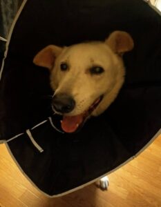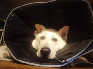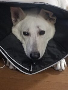 我が家の11歳のウルフは、アトピーになってしまい、こんな姿になっています。。。