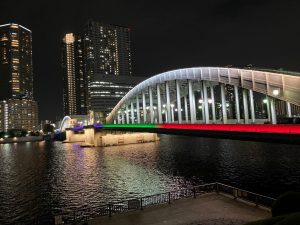 会社周辺の勝鬨橋やその周辺の橋も含めてライトアップされていてかなりきれいでした。