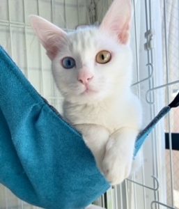 オッドアイの白猫。背中が若干黄ばんでます